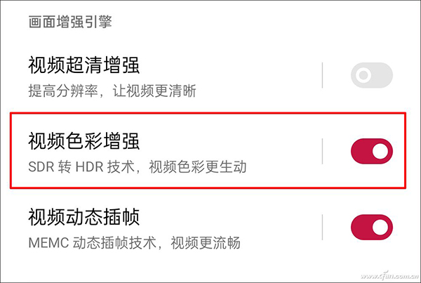 前者可以自動將SDR視頻內容轉成HDR,讓視頻色彩更生動。后者則能將網上最常見的只有24幀的視頻通過獨立芯片+獨家算法的方式,最高插至120幀播放出來,從而讓視頻畫面更連貫。