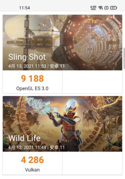 在展現(xiàn)GPU性能的3dmark中,一加9R獲得了Sling Shot 9188分,Wild Life 4286分的成績(jī),在一眾870機(jī)型中屬于中上水平。