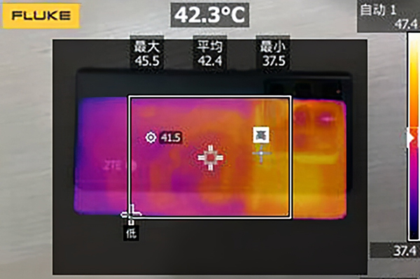 Axon30?Ultra的散熱系統(tǒng)是由2880平方毫米大面積VC液冷均熱板、高功率導熱凝膠和石墨烯銅基復合材料組成的。60分鐘游戲后機身背部最高溫度為45.5攝氏度,平均溫度為42.4攝氏度,最低溫度為37.5攝氏度。面對旗艦級硬件的發(fā)熱,這個結果足夠優(yōu)秀。