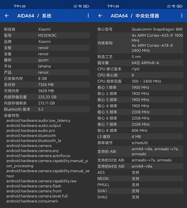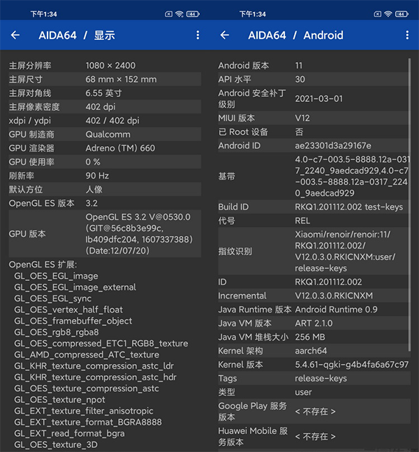 其次在AIDA64中我們可以看到,小米11青春版的Adreno 642 GPU目前驅(qū)動(dòng)版本為v530,與驍龍888所集成的Adreno 660最新驅(qū)動(dòng)版本完全相同,同時(shí)它們都比驍龍870集成的Adreno 650 GPU驅(qū)動(dòng)版本號(hào)更高。