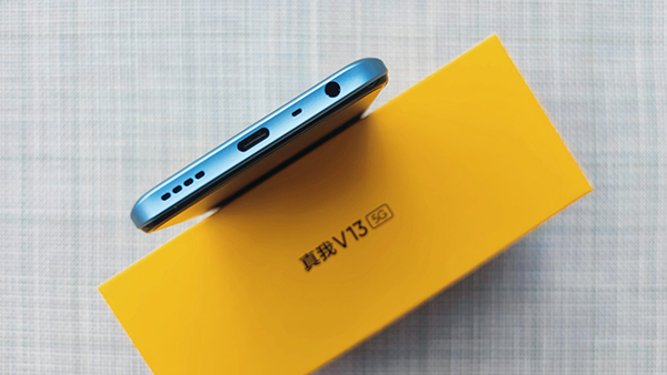尤其是realme真我V13的底部保留了3.5mm耳機(jī)插孔,這對于喜歡用有線耳機(jī)的朋友是個(gè)福音,畢竟出門不用帶短而小且容易丟的轉(zhuǎn)換線。除了3.5mm耳機(jī)插孔外,還配有一個(gè)USB-C充電口及揚(yáng)聲器。