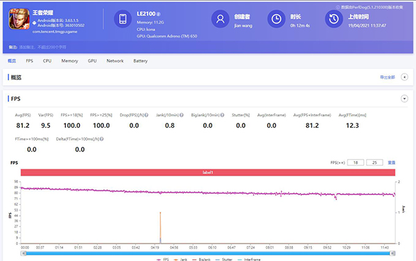 驍龍870版一加9R在《王者榮耀》開(kāi)啟90幀模式進(jìn)行實(shí)測(cè),游戲時(shí)長(zhǎng)約12分鐘,未做任何優(yōu)化采用默認(rèn)模式(均衡模式),具體測(cè)試成績(jī)?nèi)缦拢?
