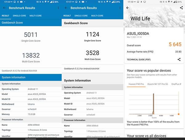 在Gekkbench 4、Geekbench 5和3D Mark基準測試中,小米11比它得分更高。雖然其中的差距很小,但考慮到它是一款游戲手機,還是會讓人感覺有些遺憾。