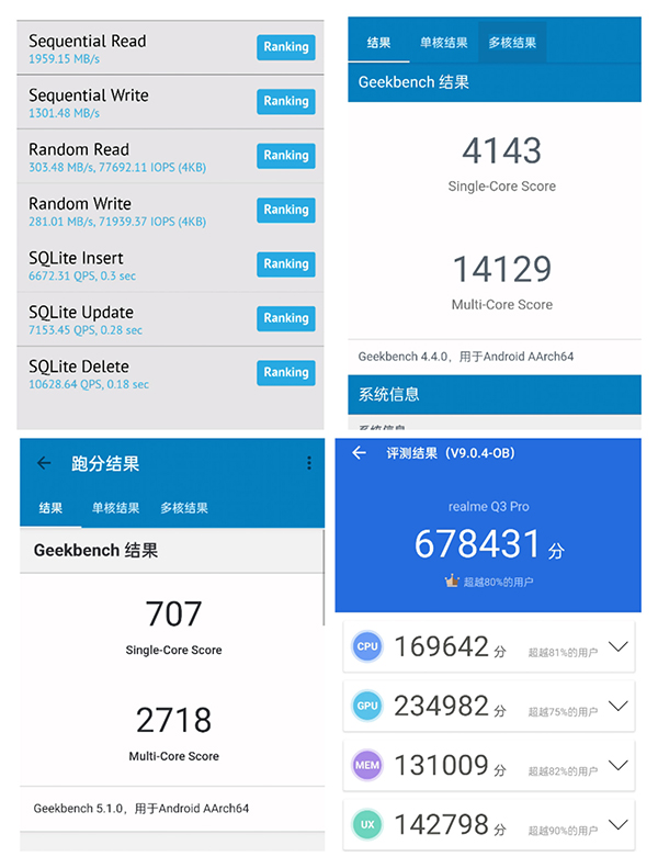 對(duì)于一款千元機(jī)定位的真我Q3 Pro來(lái)說,其性能表現(xiàn)絕對(duì)是“越級(jí)”的,通過安兔兔等跑分軟件測(cè)試了真我Q3 Pro的跑分性能,具體表現(xiàn)如下: