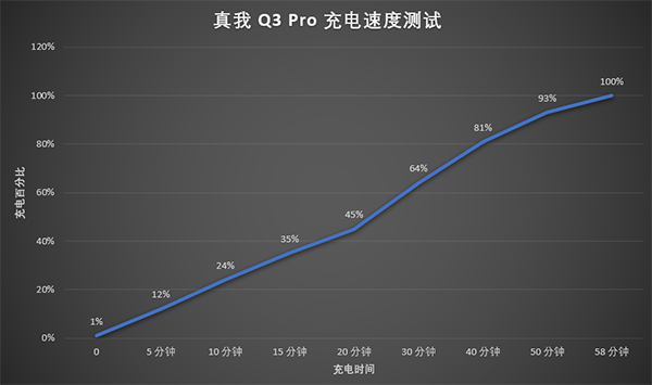 利用原裝有線充電器實(shí)測(cè),5分鐘可以從1%電量充至12%、10分鐘可以充至24%、15分鐘可以充至35%、20分鐘可以充至45%、30分鐘可以充至64%、40分鐘可以充至81%、50分鐘可以充至93%,將4500mAh電池充至100%大概需要58分鐘。