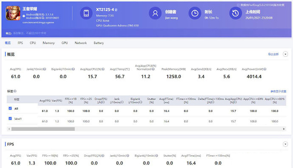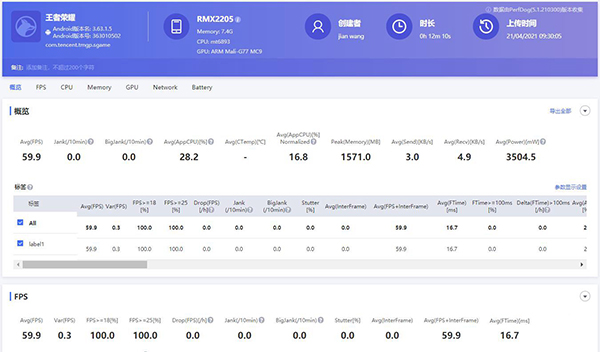 首先我們來(lái)看一下聯(lián)發(fā)科天璣1100在《王者榮耀》60幀模式下的表現(xiàn),特效全開(kāi),手機(jī)未做任何優(yōu)化,游戲時(shí)長(zhǎng)約12分鐘,具體實(shí)測(cè)成績(jī)?nèi)缦拢?