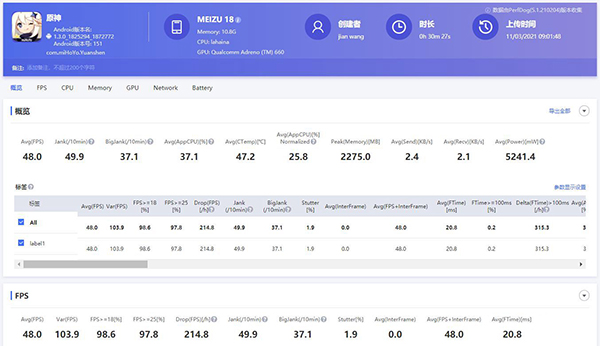 在《原神》的測(cè)試環(huán)節(jié)中加入了搭載高通驍龍888的魅族18 ,因?yàn)檫@款機(jī)型并不是主打游戲場(chǎng)景,所以具有一定的參考價(jià)值,魅族18在30分鐘左右的游戲時(shí)長(zhǎng)內(nèi)表現(xiàn)一般,具體成績(jī)?nèi)缦拢?