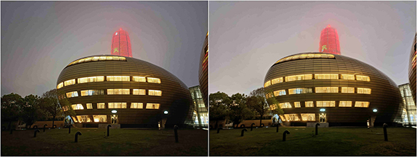 realme Q3 Pro相機(jī)夜景模式關(guān)閉(左)和開啟狀態(tài)(右)樣張對(duì)比: