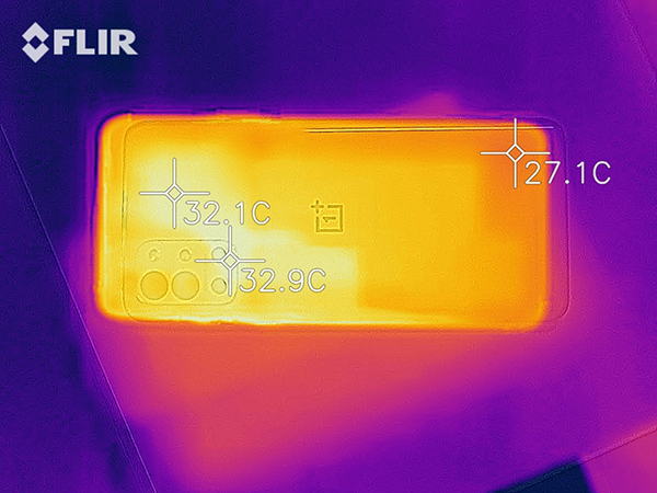 在3D Mark的壓力測(cè)試之后,我們也對(duì)一加9R的機(jī)身溫度進(jìn)行了測(cè)量,實(shí)測(cè)最高溫度32.9攝氏度,最低溫度27.1攝氏度,溫度控制十分不錯(cuò),相比驍龍888有著很大的改善,能夠保證長(zhǎng)時(shí)間高負(fù)載的游戲運(yùn)行。而這與一加9R內(nèi)部的散熱堆料有一定關(guān)系,超大面積的VC均熱板散熱方案,在背部、主板和中框位置都大面積使用了厚石墨,中框主板部分則用上了VC均熱板,這都大大提升了手機(jī)散熱效率。