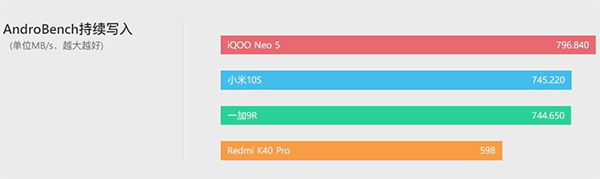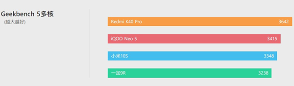 整體來看,一加9R的理論性能發(fā)揮與iQOO Neo5處于同一水平,不過CPU多核表現(xiàn)相比其它870競(jìng)品是要稍低那么一點(diǎn)的。