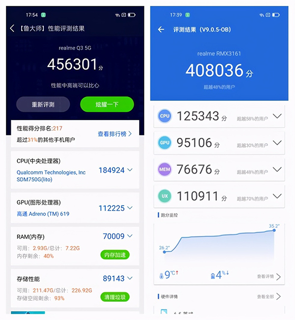 即使說得再多,還是不如實(shí)際跑分來得更為直接,在安兔兔跑分測試中,真我Q3跑分高達(dá)40萬分,而在魯大師跑分測試中,同樣也是跑出了45萬分的成績。要知道,在目前同價(jià)位中,這一跑分成績完全可以算得上是代表級水準(zhǔn)。