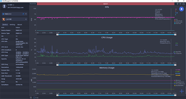 接下來,再來看看實(shí)際的游戲測試表現(xiàn)。首先就是《王者榮耀》,作為一款目前普遍流行大型手游,真我Q3運(yùn)行時(shí)也是并無挑戰(zhàn)性。能看到,整體幀率表現(xiàn)也是近乎一條直線,并未出現(xiàn)大幅度波動(dòng)情況,掉幀情況也可以說是并未出現(xiàn),即使是在多人團(tuán)戰(zhàn)時(shí),幀率波動(dòng)也是在可控范圍之內(nèi),整體流暢程度還是頗為不錯(cuò)。