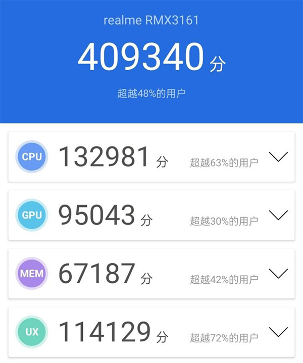 在安兔兔的跑分中,采用這款SoC的真我Q3成績(jī)接近41萬(wàn)分。在同規(guī)格價(jià)位的表現(xiàn)可以接受,畢竟750G的兩顆主頻2.2GHz的A77大核真不是吃素的,即便過(guò)去了小半年,這塊正值當(dāng)打之年的SoC,依然稱得上是千元機(jī)中的中流砥柱。
