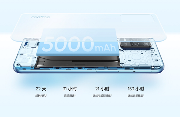 作為一款千元級別的5G入門手機,續(xù)航其實是用戶非??粗氐囊豁梾?shù),在輕薄的機身內,realme真我V13卻塞進去了一塊5000mAh容量大電池,這個5000mAh電池已經是堆到極致的水平了,官方表示,只需要5%的電量就能待機34.2小時,或者微信聊天84分鐘,對于出門在外,以防不備之需是個非常不錯的功能。