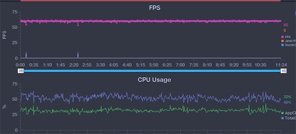 而在《和平精英》中,realme GT Neo在開(kāi)啟極限幀數(shù)+流暢畫(huà)質(zhì)的情況下,最高幀率可以來(lái)到60幀,其他畫(huà)質(zhì)下最高只有40幀。即使如此,realme GT Neo的表現(xiàn)也非常出色,極限模式下的平均幀率也有60幀,并且整個(gè)幀率曲線(xiàn)非常平緩,沒(méi)有出現(xiàn)大范圍掉幀的現(xiàn)象。