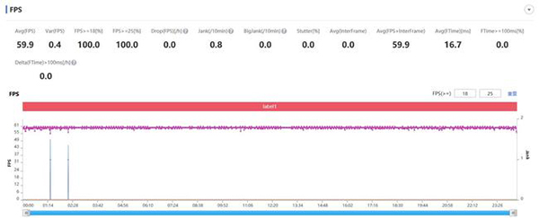 在開啟GT模式情況下,使用《和平精英》進行游戲測試,流暢+極限幀率+開抗鋸齒模式,最高60幀情況下,真我GT Neo游戲全程最終59.9幀,可以說是全程都在滿幀率運行,沒有任何壓力。