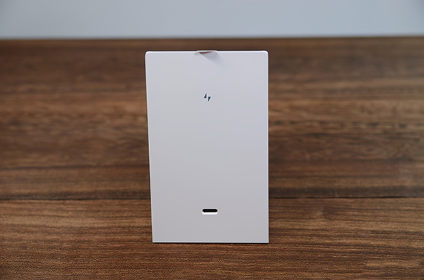 后部沒有了進(jìn)風(fēng)口,更加簡潔,整體性更強(qiáng)。只有一個type-c接口和一個類似閃電的logo。