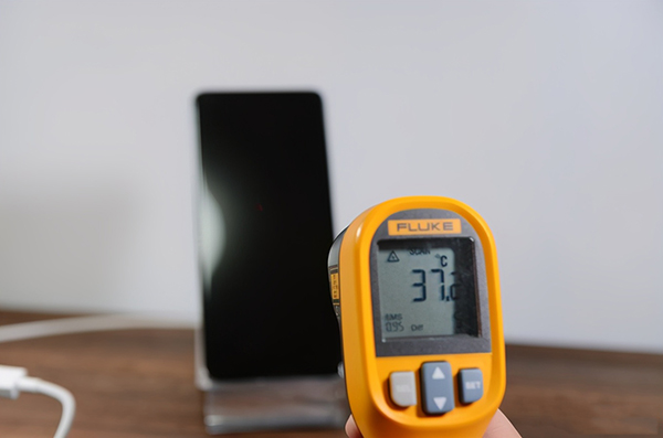 充電過程中手機(jī)溫?zé)?,背面最高溫度大約36攝氏度。