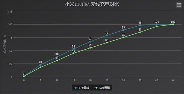 由于將小米11 Ultra放在10Ultra的55W立式風(fēng)冷無線充上能夠成功激活50W Max無線閃充,所以我很好奇功率稍低的50W無線充電多久能夠充滿5000mAh電池容量的小米11 Ultra。
