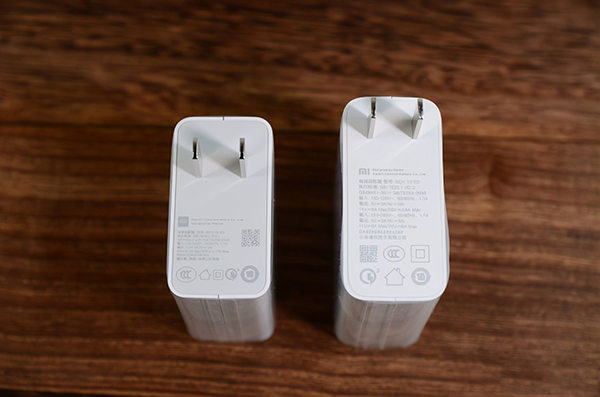 67W與120W比較,體積上小一圈,但是設(shè)計(jì)幾乎相同,無法折疊的電源插頭也“繼承”了下來。