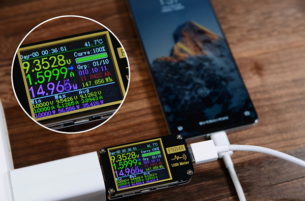 測試過程中,120W電源適配器最高給無線座充提供了71W的輸入功率,屏幕顯示充滿用時37分鐘,后續(xù)涓流充電5分鐘,42分鐘完全充滿。