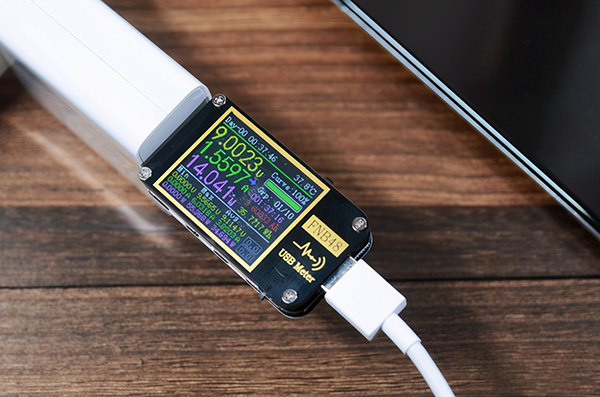 不到37分鐘即可完成1%-100%的充電,全程最高電流達(dá)到了6.1A,但最大功率只來到了56.5W,雖然沒有用到極限功率,但也完成了宣傳的快充效果。