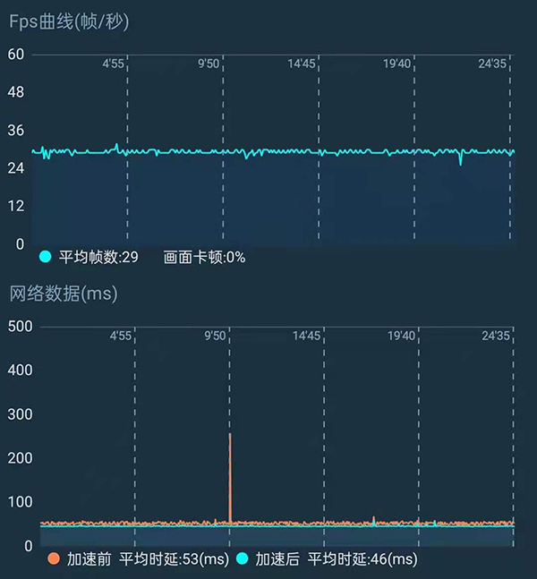 對于《和平精英》游戲,基本可以在30fps下流暢的玩耍,平均幀率29fps,并且沒有卡頓現(xiàn)象,表現(xiàn)還是不錯的。