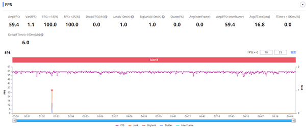 游戲?qū)崪y中,真我Q3的表現(xiàn)中規(guī)中矩。測試中,熱門游戲《王者榮耀》的幀率天花板為60幀,在把畫質(zhì)開到能開的最高畫質(zhì)之后,其游戲全程的平均幀率為59.4幀,也算是滿幀水平。從圖形和實際體驗上看,沒有明顯的卡頓情況,整體過程還是比較穩(wěn)的。