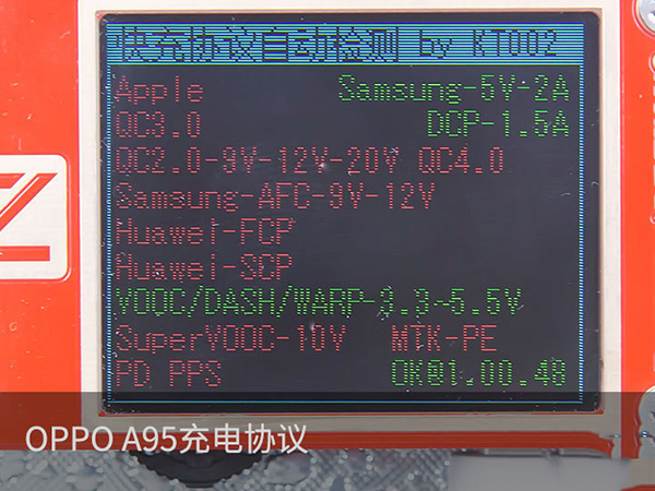 在OPPO A95的包裝中默認附送了VOOC充電器和數(shù)據(jù)線,其支持的協(xié)議如下:Samsung 5V/2A、DCP 1.5A、VOOC/Dash/Warp 5.5V等,充電器線材重量與便攜性尚可。