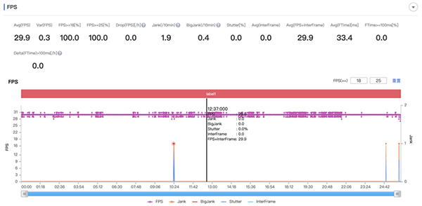 游戲性能方面我們也測試了一下,使用PerfDog在和平精英高清+高幀率模式下進(jìn)行了25分鐘的測試,這個時間接近一局游戲的長度。測試結(jié)果如上圖所示,OPPO A95的幀率表現(xiàn)非常穩(wěn)定,卡頓次數(shù)也非常少。顯然這個畫質(zhì)模式并沒有到達(dá)天璣800U的極限,但礙于和平精英并不提供更高的畫質(zhì)選項,因此我們也無法進(jìn)一步上探該機在這款游戲中的極限。