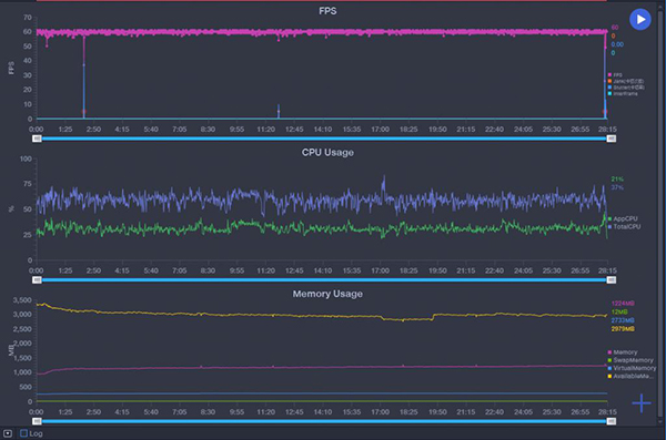 從游戲表現(xiàn)來(lái)看,運(yùn)行最高畫(huà)質(zhì)《王者榮耀》,游戲30分鐘耗電12%,平均幀率59.9Hz,長(zhǎng)時(shí)間運(yùn)行也無(wú)明顯發(fā)燙現(xiàn)象。