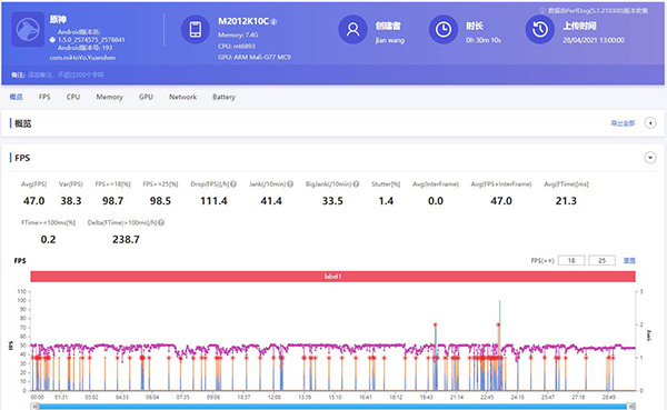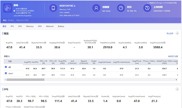在這里來(lái)測(cè)試一下《原神》游戲的性能表現(xiàn)我了,Redmi K40游戲增強(qiáng)版在極限畫(huà)質(zhì)下《原神》60幀的實(shí)測(cè)表現(xiàn),原神這款游戲可以說(shuō)是目前旗艦手機(jī)的夢(mèng)魘,還沒(méi)有一款手機(jī)能夠滿幀運(yùn)行, Redmi K40游戲增強(qiáng)版在30分鐘左右的游戲時(shí)長(zhǎng)內(nèi)表現(xiàn)具體成績(jī)?nèi)缦拢?