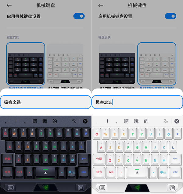 或許是為了讓用戶在日常使用過程中,也能感受到這顆線性馬達(dá)所帶來的體驗(yàn)提升,這次Redmi還聯(lián)合雷蛇一起做了兩款「機(jī)械鍵盤」,如上圖所示,左側(cè)為段落光軸鍵盤,右側(cè)則是線性光軸鍵盤。開啟音效后,實(shí)際敲擊感非常接近真實(shí)的雷蛇機(jī)械鍵盤,強(qiáng)烈建議大家到線下店上手感受下。