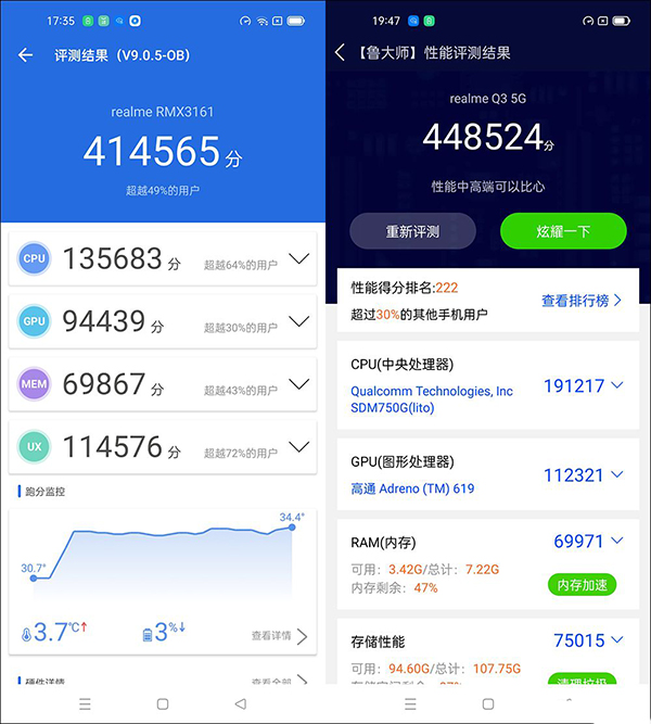 雖然真我Q3價(jià)格不高,驍龍750G的發(fā)熱較之驍龍8系更低,但realme還是為其搭配了較為豪華的VC液冷散熱系統(tǒng),用于應(yīng)付驍龍7系的散熱自然毫無(wú)壓力。