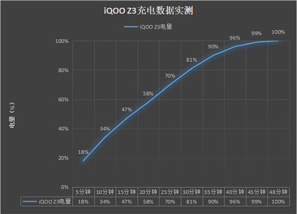 在實(shí)際測試中,iQOO Z3 25分鐘便充入了70%的電量,只用了48分鐘時就充滿了手機(jī)的全部電量。下樓拿個快遞、一次會議的時間就足以為手機(jī)充入可觀的電量,再也不用擔(dān)心睡覺前忘記給手機(jī)充電了。從充電效率來說,iQOO Z3并不算目前閃充技術(shù)的極限,但iQOO Z3作為一款千元級產(chǎn)品,能有這樣的體驗(yàn)已經(jīng)十分不錯,在同檔位產(chǎn)品中也排在一流水準(zhǔn)。