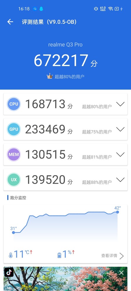 從測試來看,真我Q3 Pro的安兔兔跑分可以達到67萬,屬于領先水準。得益于這顆強悍的天璣1100旗艦級芯片,真我Q3 Pro不僅跑分亮眼,在實際的游戲應用中當然同樣強悍。在《王者榮耀》游戲高幀率模式下,平均幀率可以保持在59.9幀,性能輸出穩(wěn)定,助力玩家超神表現(xiàn)。