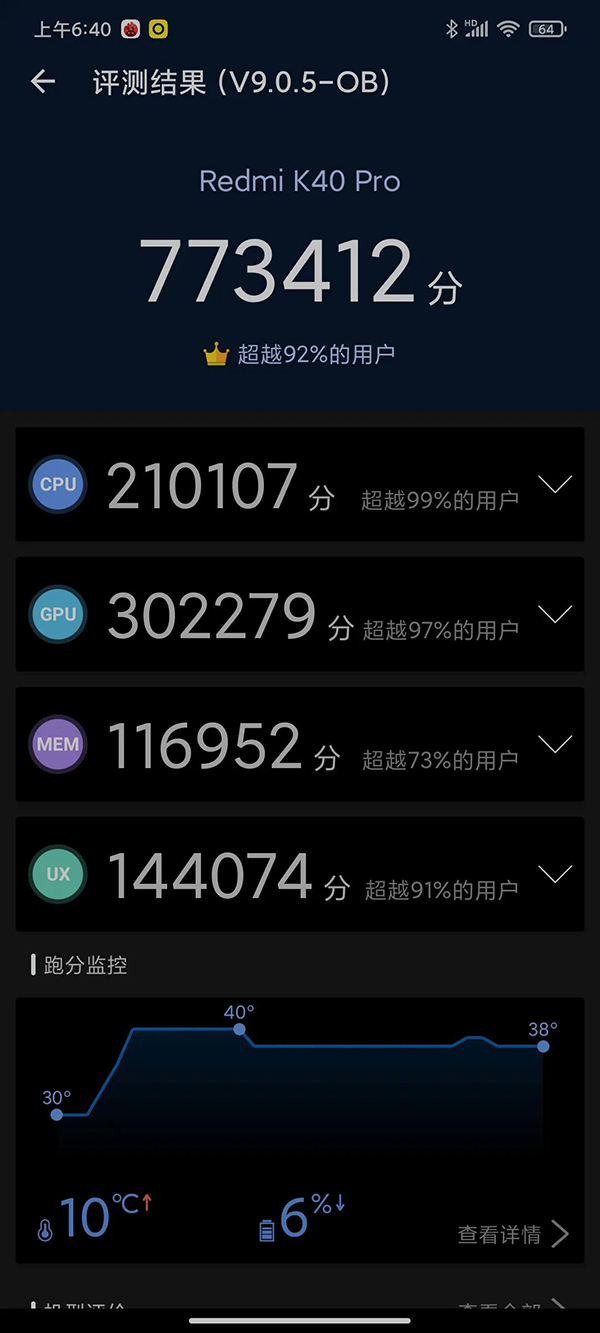 Redmi K40 Pro安兔兔跑分結果