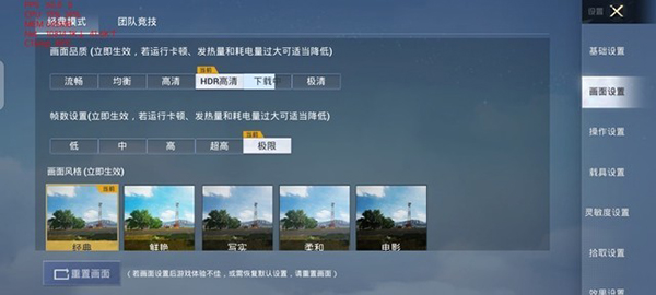 游戲?qū)崪y上,我們采用的是和平精英,這臺機(jī)子還沒有開放90Hz模式,我們采用的是HDR高清畫質(zhì)+極限幀率模式。