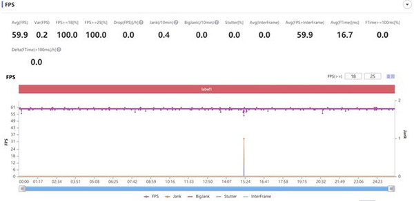 約半個小時的游戲時間,游戲表現(xiàn)非常穩(wěn)定,平均幀率59.9,全程沒有遇到卡頓現(xiàn)象。