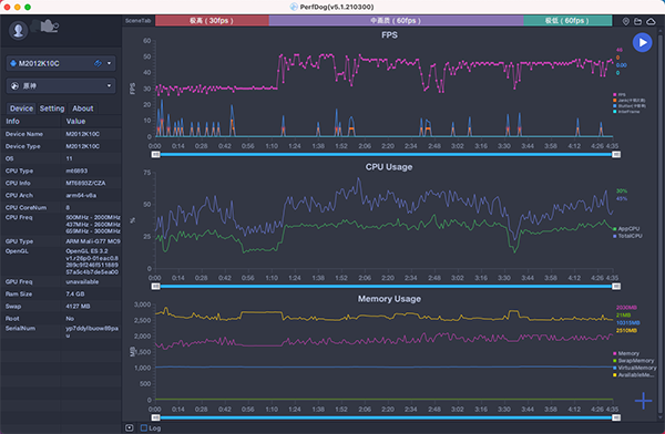 來(lái)到原神,游玩門(mén)檻之高卻未對(duì)米哈游的盈利造成絲毫影響,或許是因?yàn)殡吹闷鸬耐婕遥迷O(shè)備都不會(huì)太差。紅米K40在原神的表現(xiàn),就比較痛苦了,即便在「極低-60fps」模式下,出來(lái)的幀率曲線都是極其曲折的,反映在實(shí)際體驗(yàn)中,便是游戲畫(huà)面經(jīng)常掉幀,這還是在沒(méi)進(jìn)城時(shí)的情況,要是面對(duì)更加復(fù)雜的渲染畫(huà)面,游玩體驗(yàn)還能再降一個(gè)檔次。