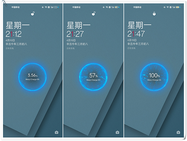 在手機(jī)充電上,以前用iphone X每天早上都必須調(diào)好鬧鐘提前起床充電,只為了出門之前能把iphone X的電量充到90%以上。而搭配 65W超級(jí)閃充的一加9R的充電相當(dāng)快速,實(shí)測(cè)15分鐘就能從3%的電量充到57%,完全充滿只需要35分鐘,早上起床洗漱吃個(gè)早餐的時(shí)間就可以把手機(jī)充滿電。