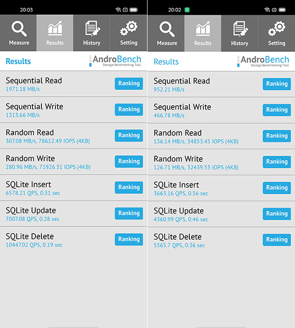 隨后再試試閃存性能的對比,真我Q3 Pro在多項測試中甚至取得了比真我Q2 Pro翻倍的分數(shù),滿血版UFS 3.1果然是各種快。得益于此,真我Q3 Pro獲得了包括應(yīng)用安裝、游戲加載、大文件拷貝等多種場景顯著提速的出色體驗。