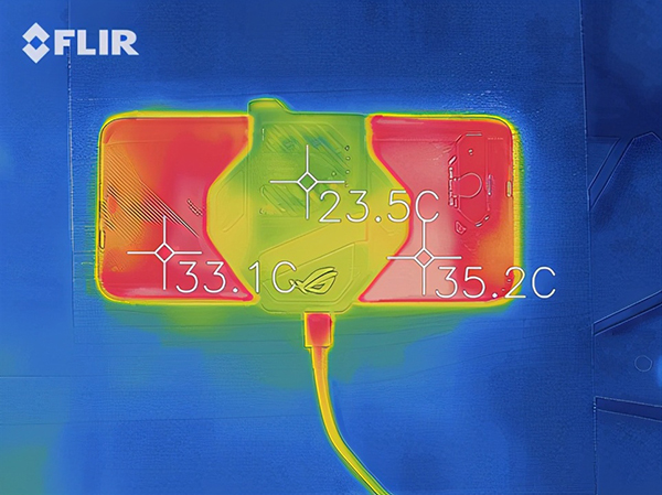 我通過(guò)溫槍測(cè)試,開(kāi)啟了ROG酷冷風(fēng)扇5之后,它的溫度控制的非常出色,即便是一邊充電一邊玩游戲,也依然可以做到36度的溫度,可以說(shuō)作用非常明顯。再搭配30分鐘可以充到73%、52分鐘就可以充滿100%的充電速度,6000毫安時(shí)超大電池,想想就很刺激。