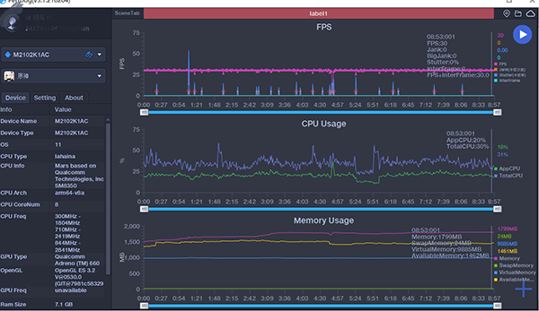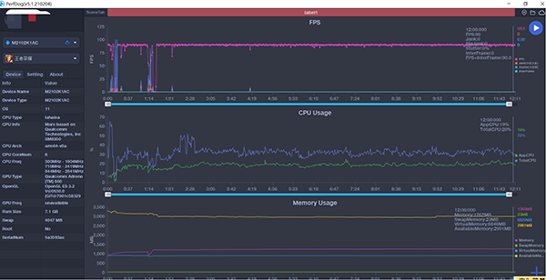 因?yàn)楣P者也是第一次玩原神,在30分鐘的游戲測(cè)試中,基本上都是在跑圖、做任務(wù),運(yùn)行時(shí)也是相當(dāng)流暢,幀率方面也是維持在30幀上下,并沒有出現(xiàn)大幅度幀率波動(dòng)情況,只有在切換地圖時(shí)幀率會(huì)出現(xiàn)較大波動(dòng)。而這一幀率表現(xiàn)也證明了,此前雷軍所說并非虛假,小米11 Pro確實(shí)有自信的資本,不過機(jī)身溫度則是上升得比較厲害,已經(jīng)上升至43.8°,所以長時(shí)間玩游戲還是盡量配備散熱背夾。