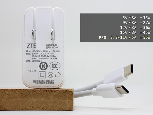 中興Axon30 Pro直接采用高通QC4+/PPS通用充電協(xié)議,標(biāo)配55W充電頭+6A數(shù)據(jù)線,充電兼容性杠杠,就算臨時(shí)找不到5A線,隨便找條3A線的也能上45W。