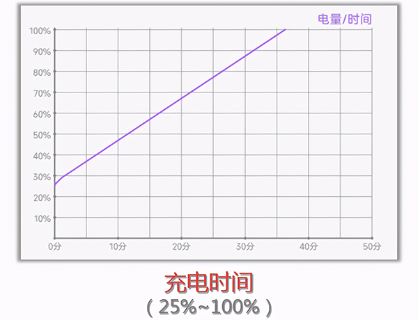 通過兩次采樣不難看出,整個(gè)充電過程有兩個(gè)明顯的線性區(qū)間,0%~40%之間每5分鐘增加14%,40%~90%之間每5分鐘增加10%。日常充電時(shí),可以很方便的預(yù)估充電進(jìn)度,快充15分鐘就能放心出門。