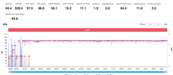 回看Redmi K40游戲增強版,也基本保持了全程穩(wěn)定,平均幀率依舊是84.4 FPS,與realme真我GT Neo相差4幀,但整體感覺還是非常流暢的,波動方面除了進游戲時不計算,在游戲過程中有稍許波動,但掉幀情況并不明顯。