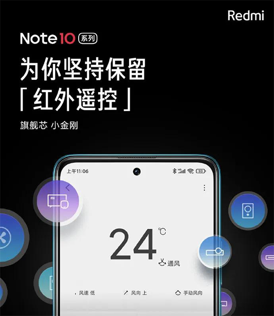 Redmi Note10手機支持紅外遙控功能,這也已經(jīng)是小米手機的特色了,上到6000元旗艦,下到千元機基本上都配備了這一功能。雖然紅外遙控平時用到的頻率不高,但關(guān)鍵時刻可以救場。比如想看的電視節(jié)目馬上就要開始了,一時之間卻找不到電視遙控器,手機紅外就派上用場了。