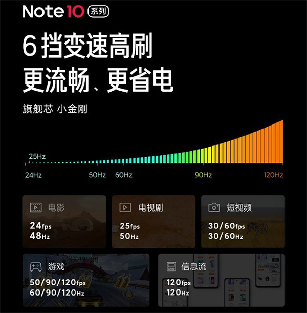 另外一個值得注意的點(diǎn)是,Note10的這個屏幕支持高刷,支持了120Hz的高刷新頻率,而且支持了6檔位的頻率自適應(yīng)調(diào)節(jié),根據(jù)用戶不同的使用場景自動調(diào)節(jié)屏幕刷寫頻率,但就這一點(diǎn)可以說這是一個素質(zhì)不錯的旗艦級屏幕。