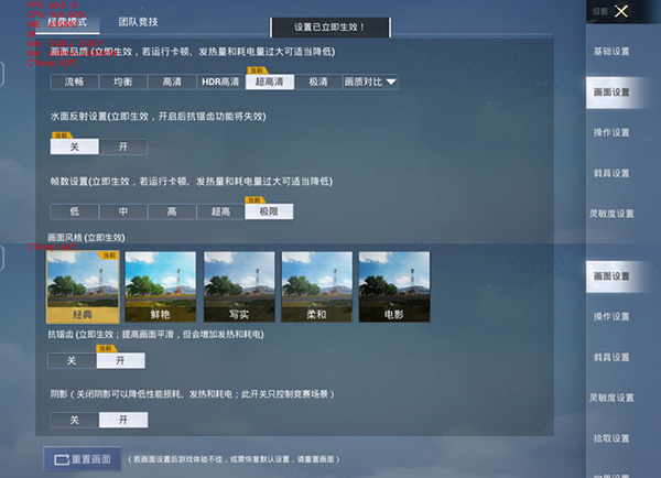 游戲?qū)崪y選擇《和平精英》,因?yàn)闇y試版本固件還無法開啟90幀模式,所以借助畫質(zhì)助手開啟「超高清+極限幀率+抗鋸齒開+陰影開」設(shè)置進(jìn)行游戲。